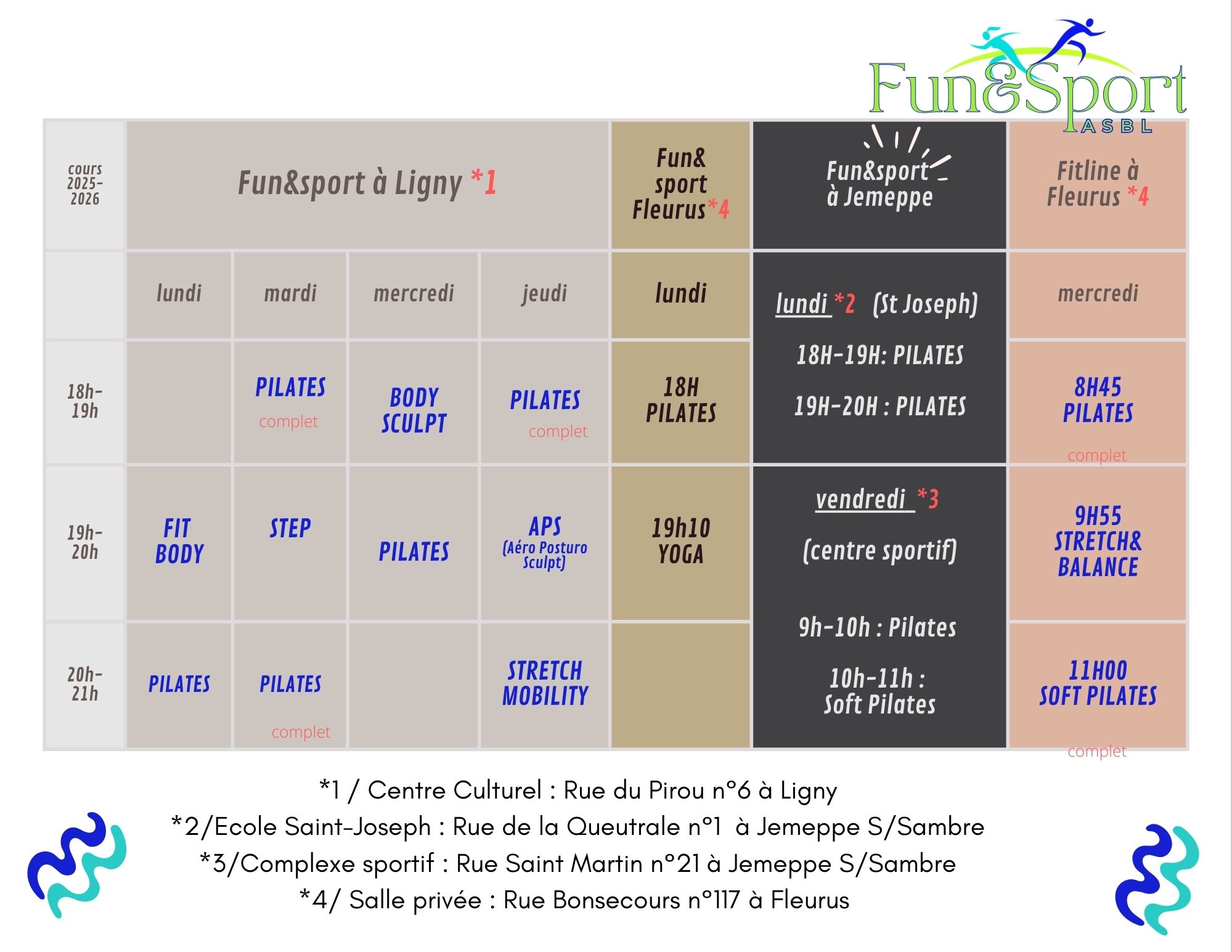 Attention pour certaines dates il y a des changements de salle , vous recevez par mail toutes les infos 🙂